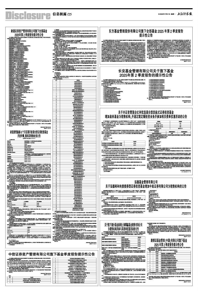 以上基金的季度报告全文于2025年7月21日在本公司网站(www.nbchina.com)和中国证监会基金电子披露网站(http://eid.csrc.gov.cn/fund)披露,供投资者查阅。如有疑问可拨打本公司客户服务电话(400-875-5888)咨询。