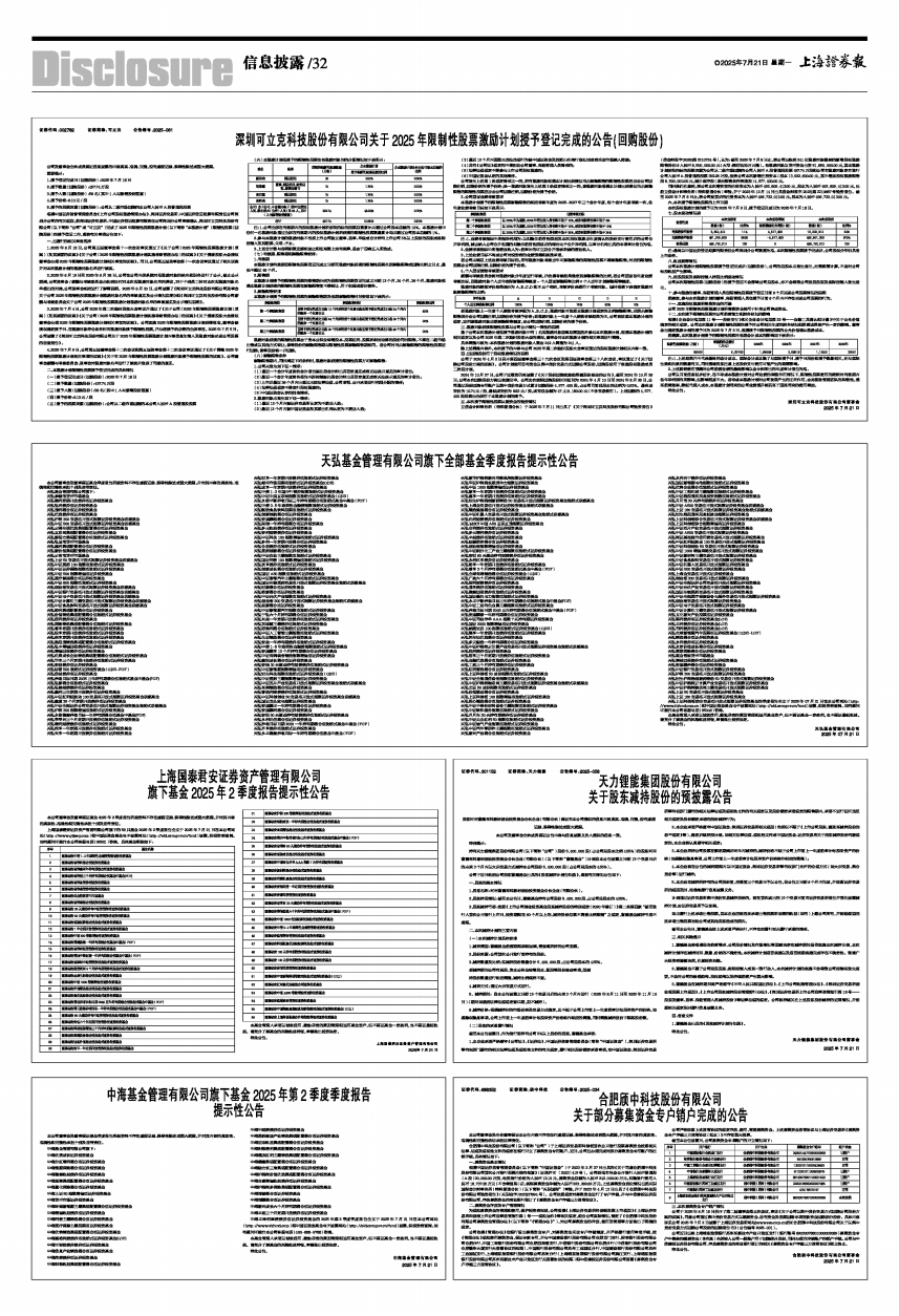 天弘上证科创板综合交易型开放式指数证券投资基金的季度报告全文于2025年07月21日在本公司网站(http://www.thfund.com.cn)和中国证监会基金电子披露网站(http://eid.csrc.gov.cn/fund)披露,供投资者查阅。如有疑问可拨打本公司客服电话(95046)咨询。