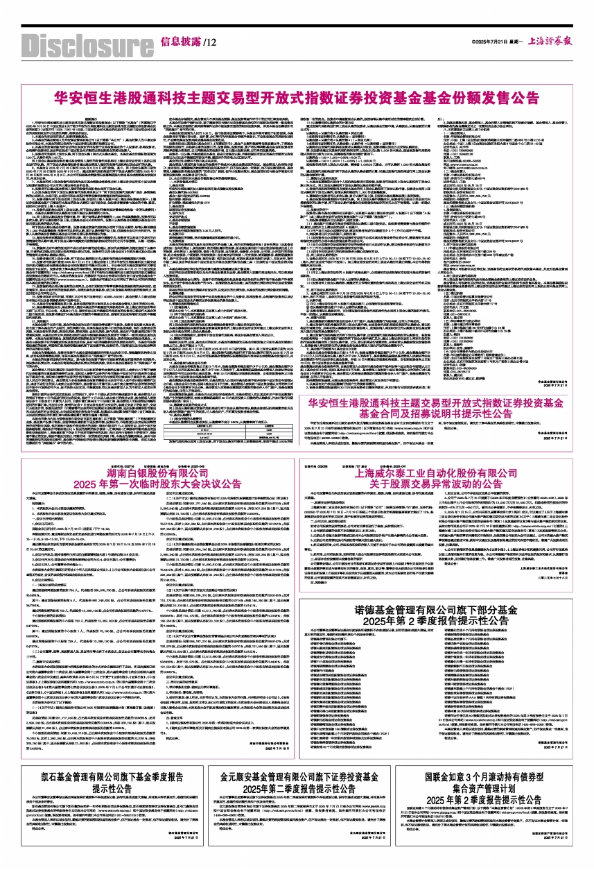 诺德华证价值优选50指数型发起式证券投资基金的2025年第2季度报告全文于2025年7月21日在本公司网站(www.nuodefund.com)和中国证监会基金电子披露网站(http://eid.csrc.gov.cn/fund)披露,供投资者查阅。如有疑问可拨打本公司客服电话(400-888-0009)咨询。
