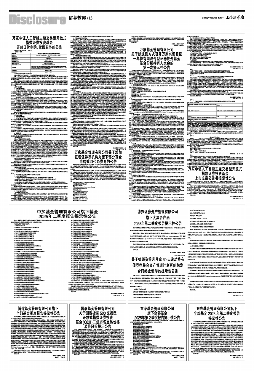 德邦证券资产管理有限公司旗下的德邦资管月月鑫30天滚动持有债券型集合资产管理计划2025年第二季度报告全文于2025年07月21日在本公司网站(www.tebonam.com.cn)和中国证监会基金电子披露网站(http://eid.csrc.gov.cn/fund)披露,供投资者查阅。如有疑问可拨打本公司客服电话(021-58588072)咨询。