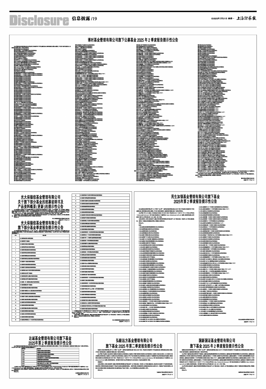 博时基金管理有限公司旗下公募基金2025年2季度报告提示性公告