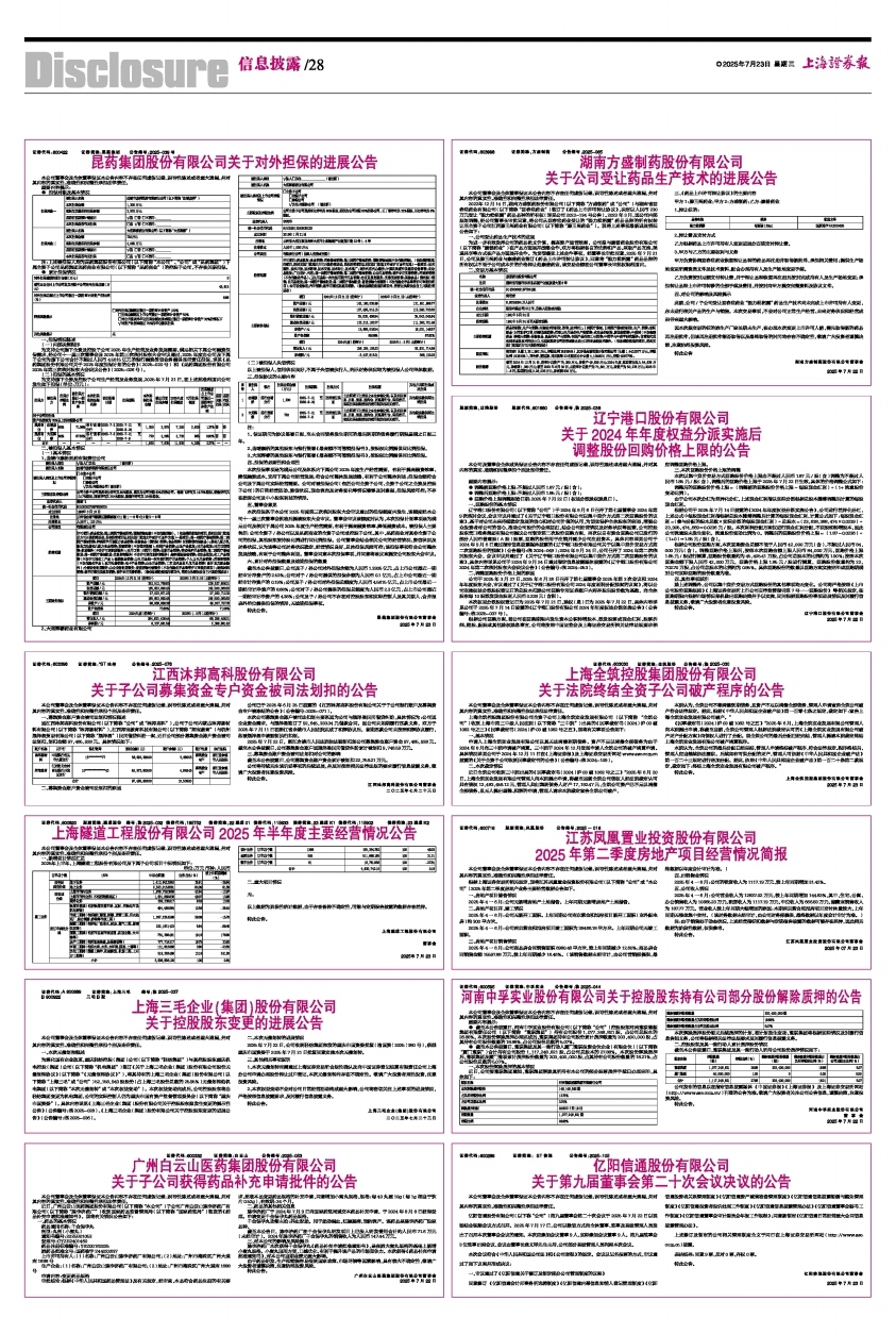 本次权益分派股权登记日为2025年7月21日,除权(息)日为2025年7月22日,具体内容详见公司于2025年7月14日披露的《辽宁港口股份有限公司2024年年度权益分派实施公告》(公告编号:临2025-037号)。