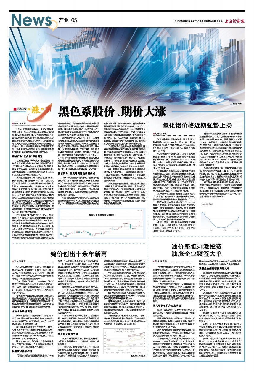上海钢联氧化铝部副经理陆俊杰表示:“‘反内卷’政策预期下,盘面价格大幅上涨,带动持货商看涨情绪较浓,挺价惜售。”