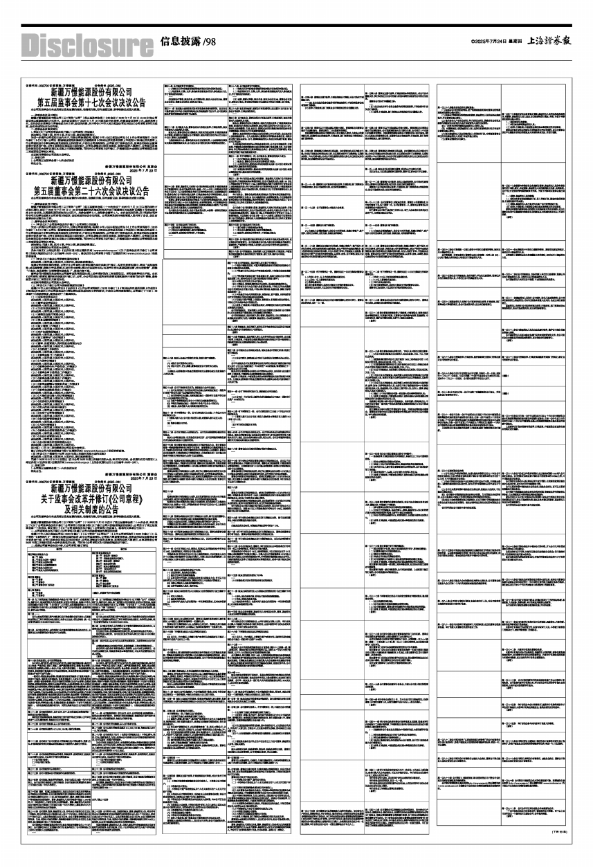 新疆万憬能源股份有限公司(以下简称“公司”)于2025年7月23日召开了第五届董事会第二十六次会议,审议通过了《关于公司监事会改革并修订〈公司章程〉的议案》和《关于修订公司内部治理制度的议案》;公司召开了第五届监事会第十七次会议,审议通过了《关于公司监事会改革并修订〈公司章程〉的议案》。现将有关事项公告如下: