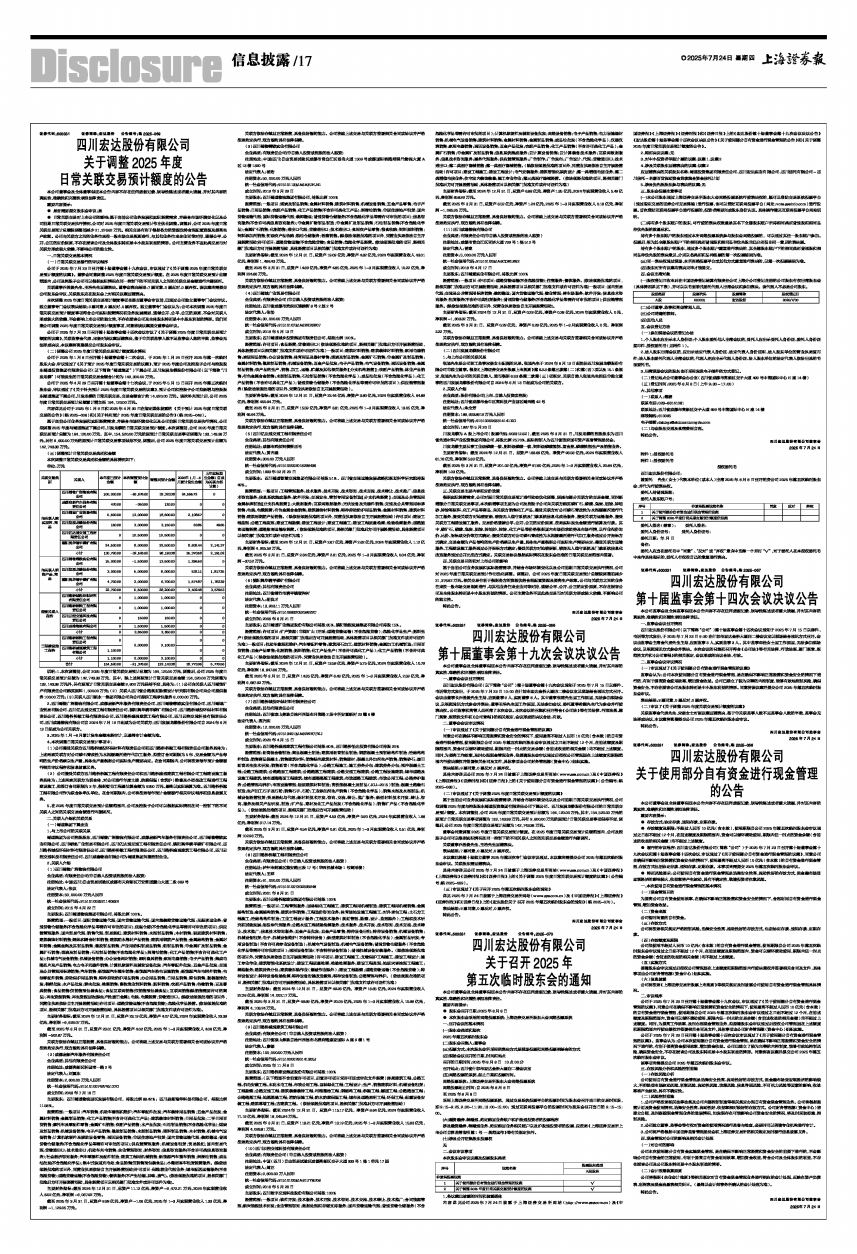 内 容 详 见公司 2025 年 7 月 24日 披 露 于 上 海 证 券 交 易 所 网 站 (http://www.ses.com.cn) 及《中国证券报》《上海证券报》《证券时报》和《证券日报》上的《宏达股份第十届董事会第十九次会议决议公告》《宏达股份第十届监事会第十四次会议决议公告》《关于使用部分自有资金进行现金管理的公告》和《关于调整2025年度日常关联交易预计额度的公告》。
