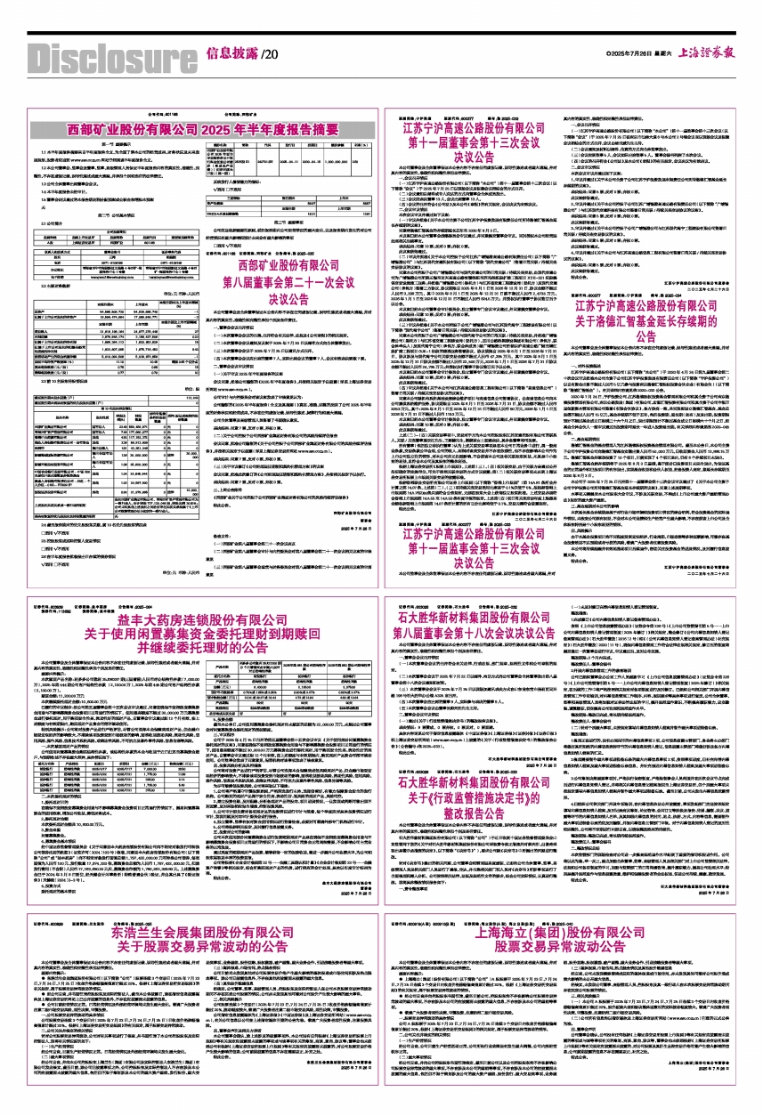 本公司于2025年7月25日召开第十一届董事会第十三次会议审议通过了《关于本公司全资子公司宁沪投资公司所持洛德汇智基金延长存续期的议案》,同意上述展期事项。