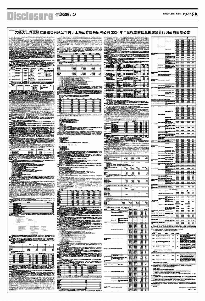 文峰大世界连锁发展股份有限公司关于上海证券交易所对公司2024年年度报告的信息披露监管问询函的回复公告