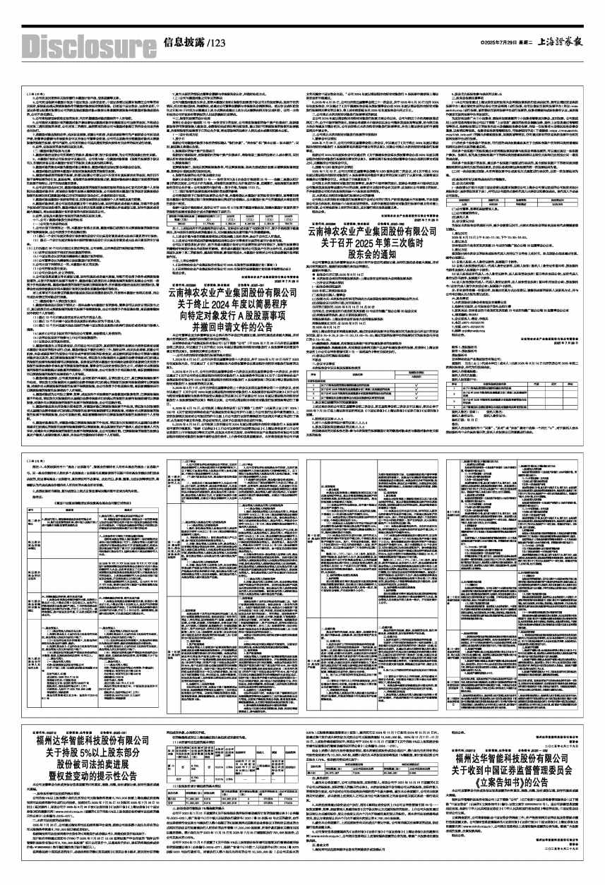 公司持股5%以上股东蔡小如先生所持公司无限售条件流通8,700,000股被上海金融法院在淘宝网司法拍卖网络平台进行公开拍卖,拍卖时间:2025年7月25日10时起至2025年7月26日10时止(延时除外),详见公司于2025年6月26日在《证券时报》《证券日报》《上海证券报》《中国证券报》和巨潮资讯网(www.cninfo.com.cn)披露的《关于持股5%以上股东部分股份被司法拍卖的提示性公告》(公告编号:2025-027)。