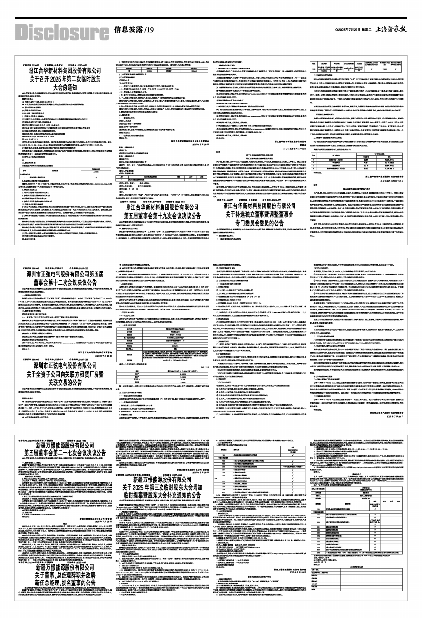 请参见2025 年7月29日刊载于《上海证券报》、《证券时报》及上海证券交易所网站 http://www.sse.com.cn 的公司《第五届董事会第十九次会议决议公告》等相关公告。