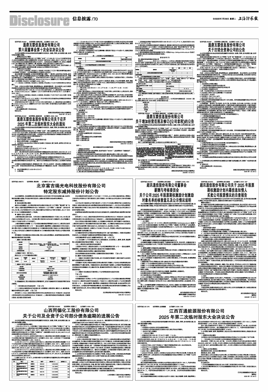 2、网络投票时间:2025年7月28日;其中通过深圳证券交易所交易系统进行网络投票的具体时间为:2025年7月28日9:15-9:25,9:30一11:30,13:00一15:00;通过深圳证券交易所互联网投票系统投票的具体时间为:2025年7月28日9:15-15:00期间任意时间。