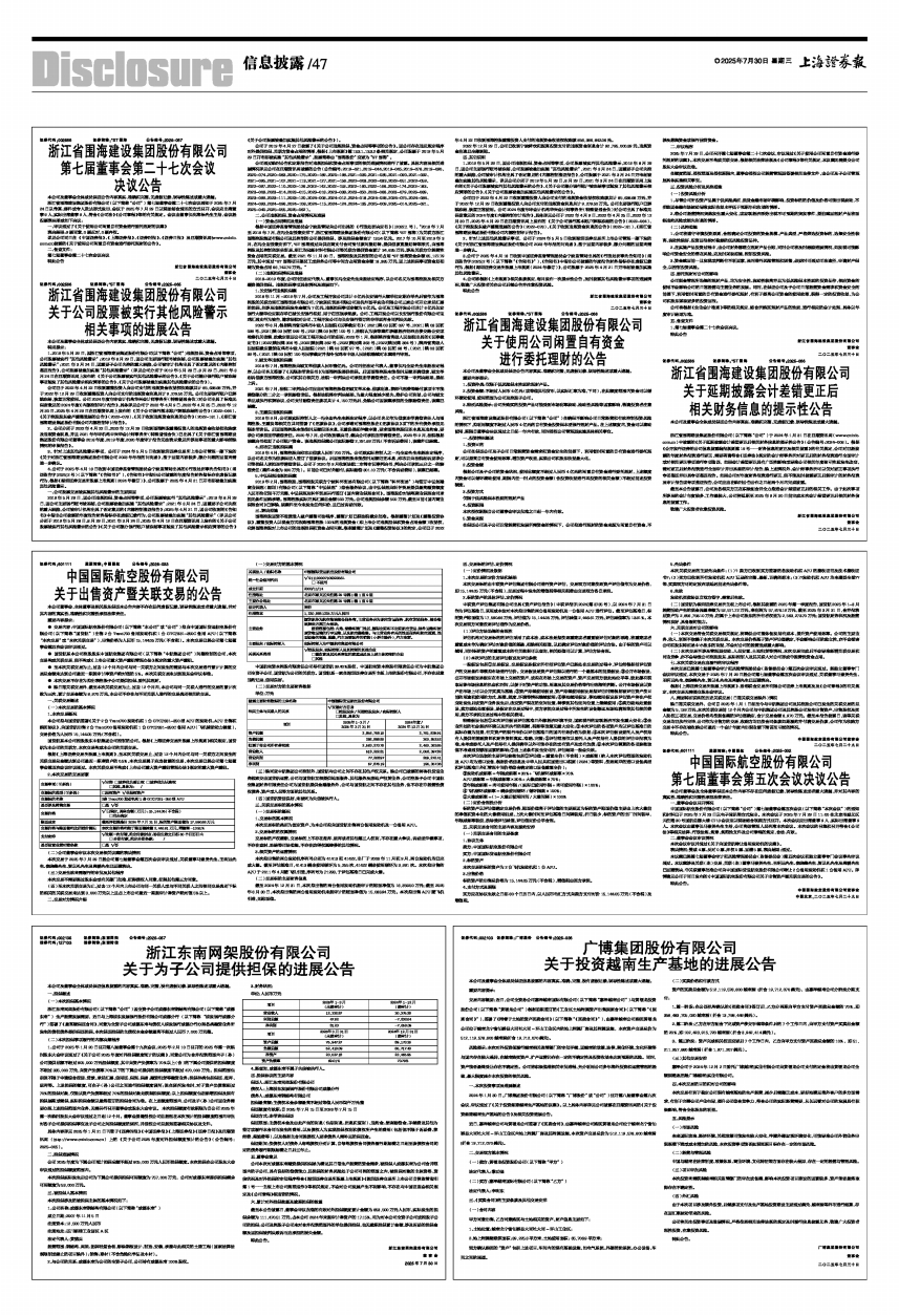 浙江省围海建设集团股份有限公司(以下简称“公司”) 第七届董事会第二十七次会议通知于2025年7月24日以传真、邮件或专人送达形式发出,会议于2025年7月29日以现场结合通讯的方式召开,会议应出席董事9人,实际出席董事9人,符合《公司法》《公司章程》等的有关规定。会议由董事长沈海标先生主持,会议经投票表决形成如下决议: