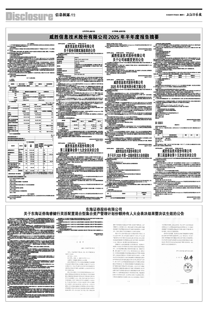 具体内容详见公司同日刊登于上海证券交易所网站(www.sse.com.cn)的《威胜信息技术股份有限公司2025年半年度报告》及《威胜信息技术股份有限公司2025年半年度报告摘要》。