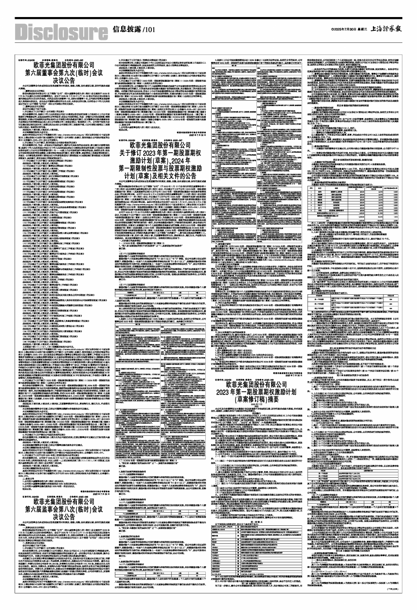 欧菲光集团股份有限公司(以下简称“公司”)于2023年1月17日分别召开第五届董事会第十二次(临时)会议和第五届监事会第九次(临时)会议,审议通过了《关于公司〈2023年第一期股票期权激励计划(草案)〉及其摘要的议案》《关于公司〈2023年第一期股票期权激励计划实施考核管理办法〉的议案》等议案。公司于2024年3月4日分别召开第五届董事会第二十六次(临时)会议和第五届监事会第二十一次(临时)会议,审议通过了《关于公司〈2024年第一期限制性股票与股票期权激励计划(草案)〉及其摘要的议案》《关于公司〈2024年第一期限制性股票与股票期权激励计划实施考核管理办法〉的议案》等议案。具体内容详见公司分别于2023年1月19日、2024年3月5日在巨潮资讯网(http://www.cninfo.com.cn/)和《证券时报》《中国证券报》《上海证券报》《证券日报》披露的《2023年第一期股票期权激励计划(草案)》及摘要(摘要公告编号:2023-004)、《2024年第一期限制性股票与股票期权激励计划(草案)》及摘要(摘要公告编号:2024-010)。