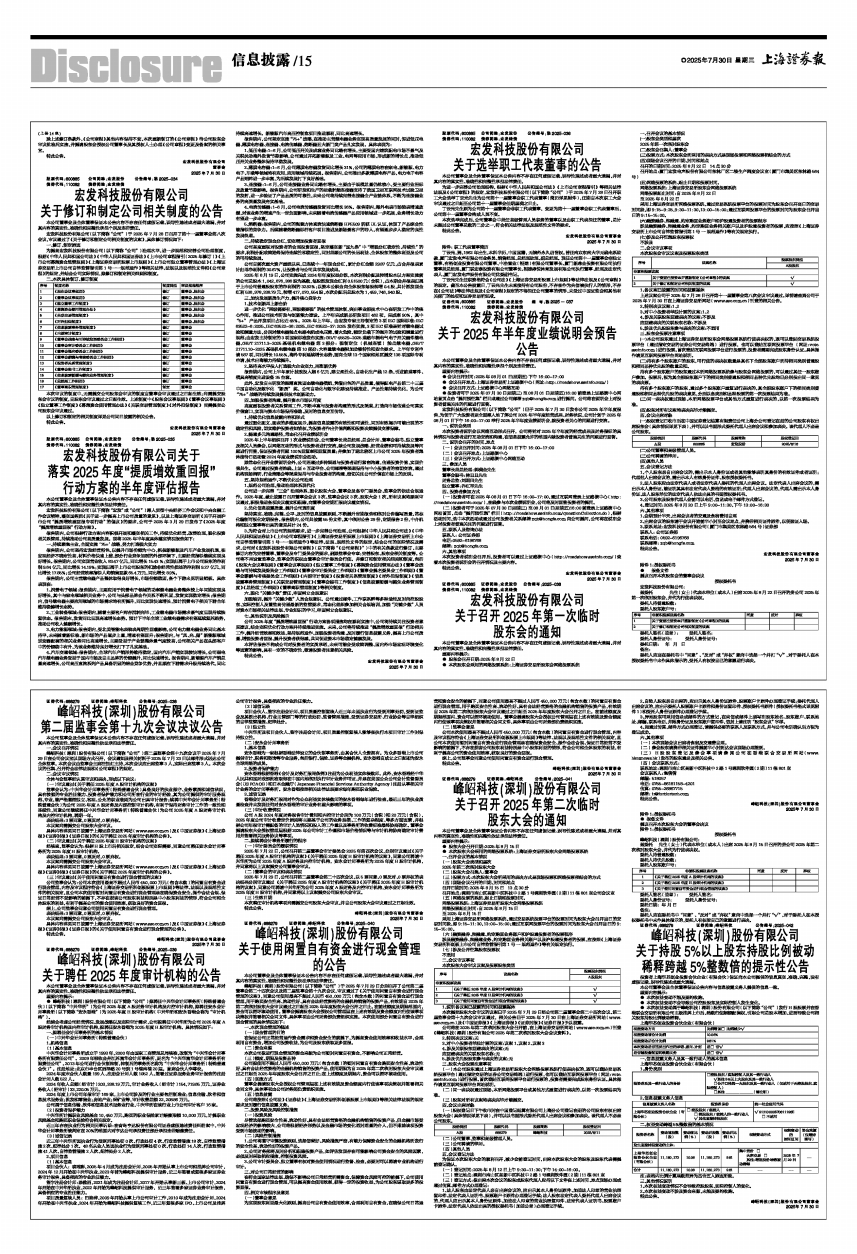 为提高宏发科技股份有限公司(以下简称“公司”)治理水平,进一步规范和完善公司治理制度,根据《中华人民共和国公司法》《中华人民共和国证券法》《上市公司章程指引(2025年修订)》《上市公司募集资金监管规则》《上海证券交易所股票上市规则》《上市公司独立董事管理办法》《上海证券交易所上市公司自律监管指引第 1 号一一规范运作》等相关法律、法规以及规范性文件和《公司章程》的规定,并结合公司实际情况,拟修订和制定相关细则和制度。