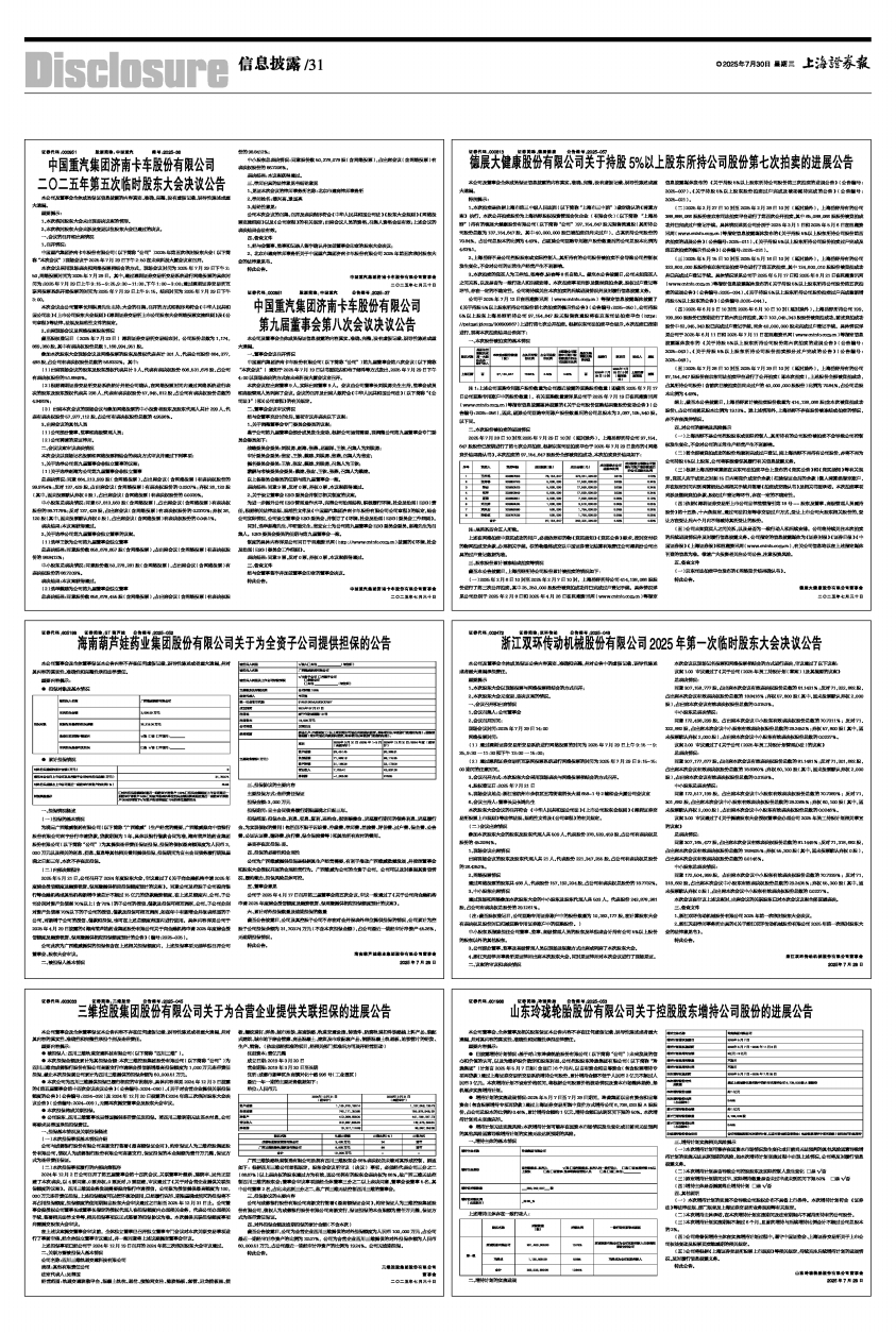 证券代码:000951 股票简称:中国重汽 编号:2025-36