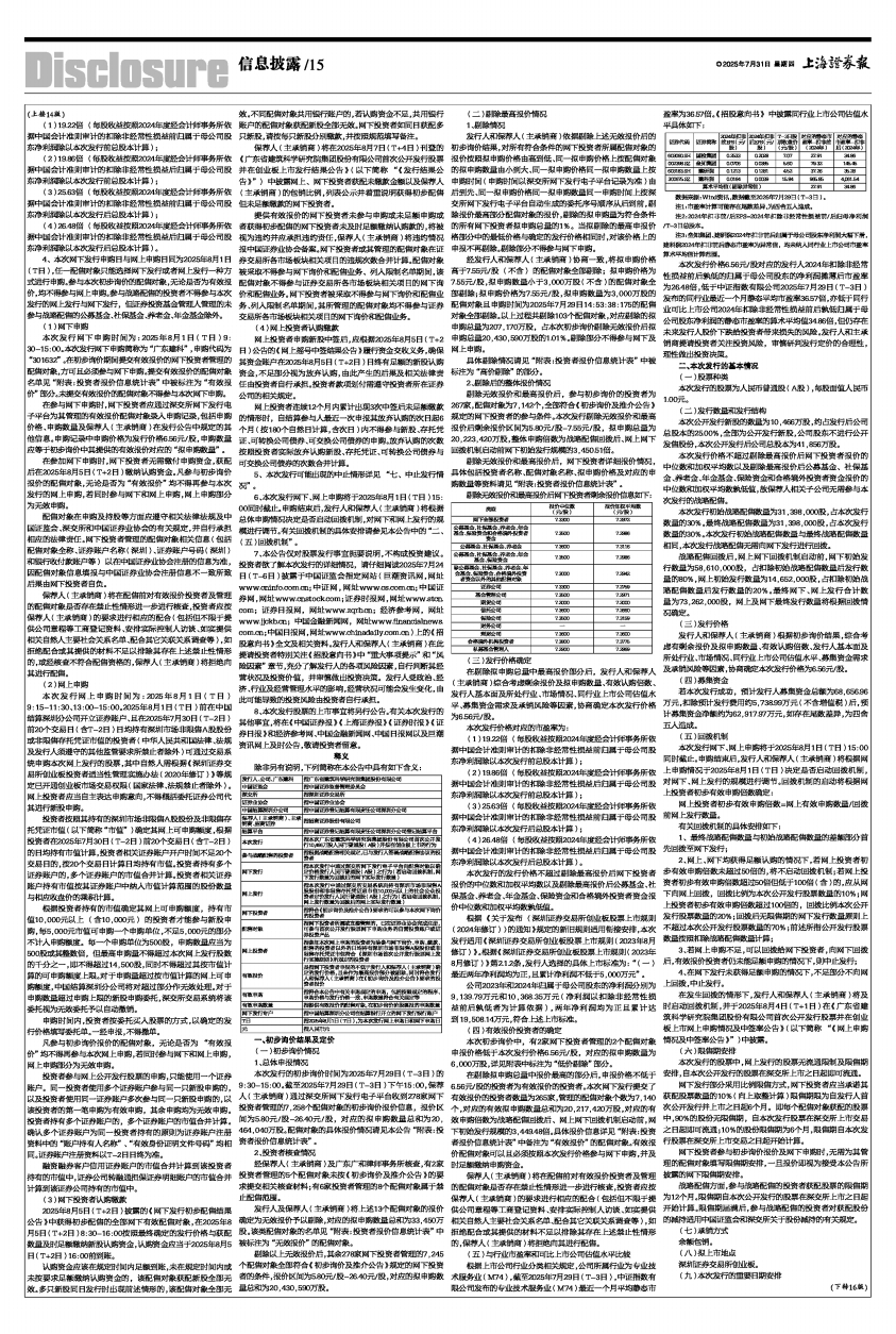 6、本次发行网下、网上申购将于2025年8月1日(T日)15:00同时截止。申购结束后,发行人和保荐人(主承销商)将根据总体申购情况决定是否启动回拨机制,对网下和网上发行的规模进行调节。有关回拨机制的具体安排请参见本公告中的“二、(五)回拨机制”。