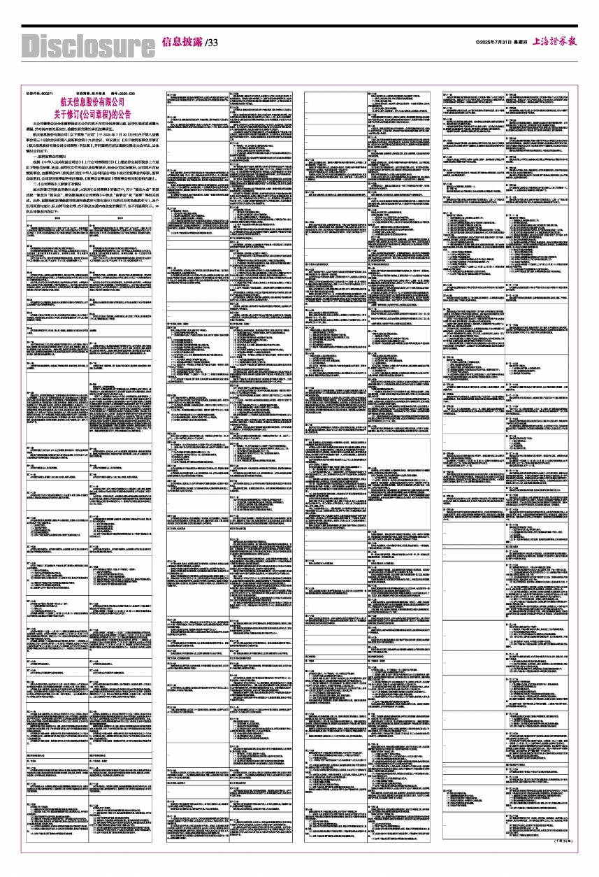 航天信息股份有限公司(以下简称“公司”)于2025年7月30日分别召开第八届董事会第三十四次会议和第八届监事会第十九次会议,审议通过《关于取消监事会并修订〈航天信息股份有限公司公司章程〉的议案》,并同意将前述议案提交股东大会审议,具体情况公告如下: