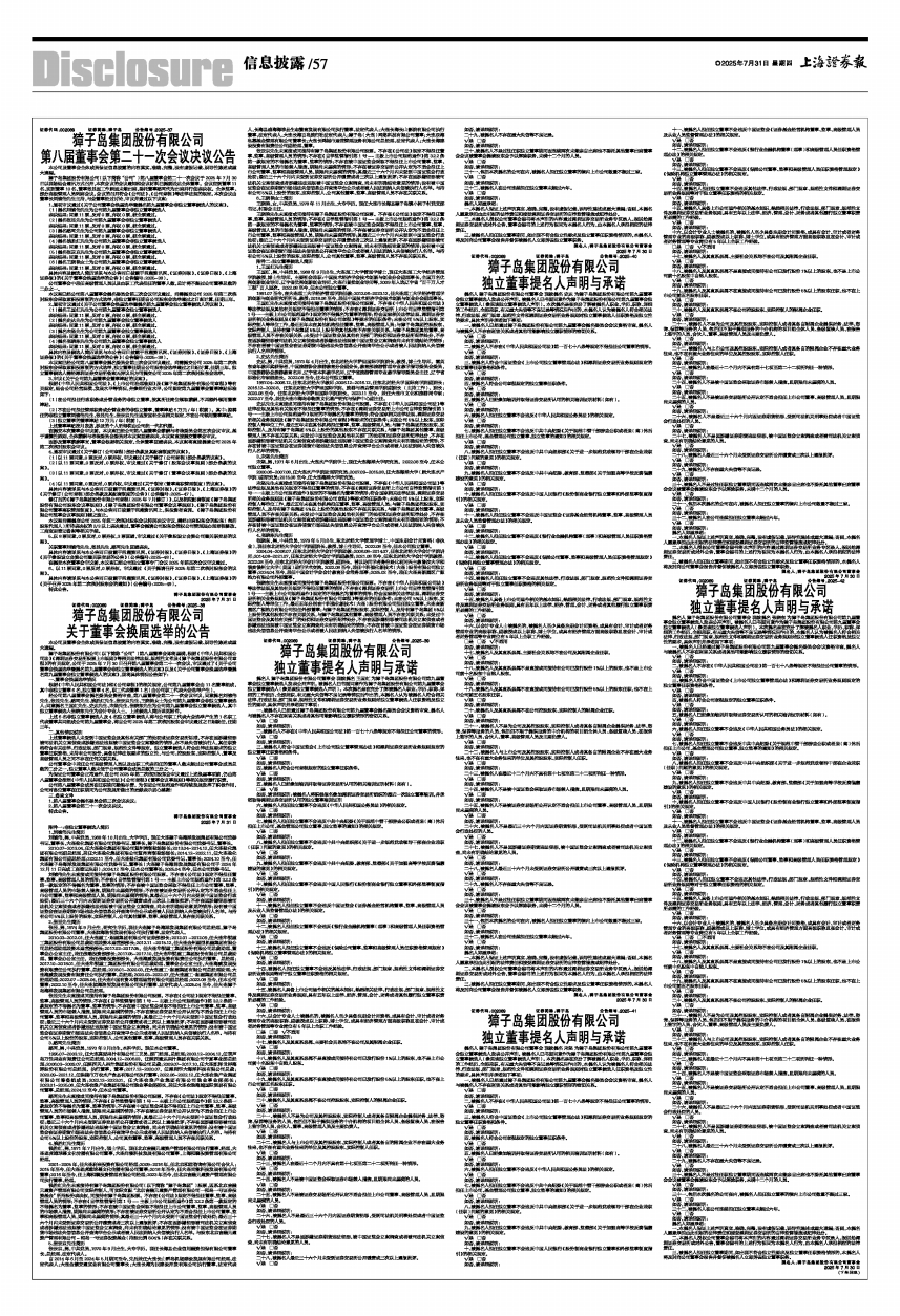 獐子岛集团股份有限公司(以下简称“公司”)第八届董事会即将届满,根据《中华人民共和国公司法》《深圳证券交易所股票上市规则》等相关法律法规、规范性文件及《獐子岛集团股份有限公司章程》的有关规定,公司于2025年7月30日召开第八届董事会第二十一次会议,审议通过了《关于公司董事会换届选举暨提名第九届董事会非独立董事候选人的议案》以及《关于公司董事会换届选举暨提名第九届董事会独立董事候选人的议案》,现将具体情况公告如下: