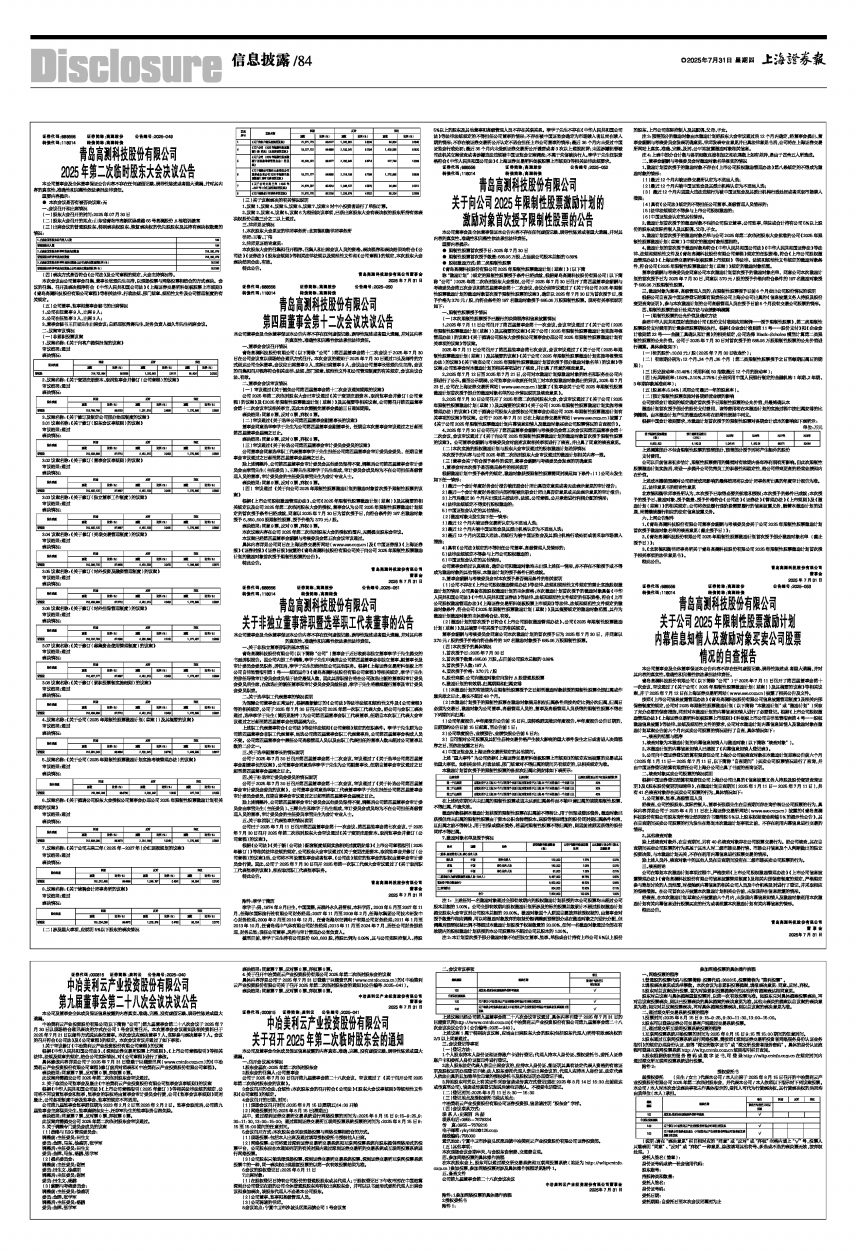 青岛高测科技股份有限公司(以下简称“公司”)第四届董事会第十二次会议于2025年7月30日在公司会议室以现场结合通讯方式召开。本次会议的通知于2025年7月30日通过口头及邮件的方式送达公司全体董事。会议应出席董事9人,实际出席董事9人,会议由公司董事长张顼先生主持。会议的召集和召开程序符合相关法律、法规、部门规章、规范性文件和公司管理制度的有关规定,会议决议合法、有效。