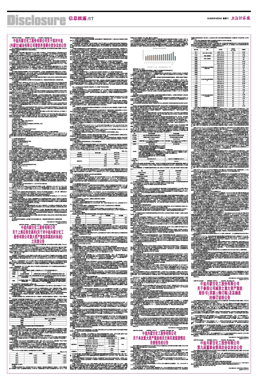 根据上海证券交易所于2025年7月30日下发的《关于对中盐内蒙古化工股份有限公司重大资产重组草案的问询函》(上证公函[2025]1154号)的相关要求,中盐内蒙古化工股份有限公司(以下简称“公司”、“上市公司”或“中盐化工”)及相关中介机构对有关问题进行了认真分析及回复,具体答复如下(如无特别说明,本回复公告中所涉及的简称与《中盐内蒙古化工股份有限公司参股公司减资之重大资产重组报告书(草案)(修订稿)》中一致):