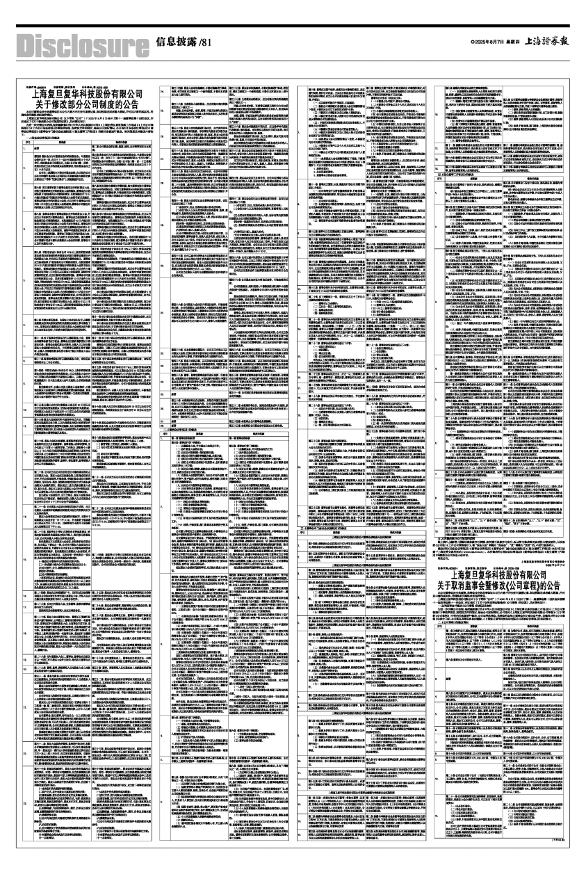 上海复旦复华科技股份有限公司(以下简称“公司”)于2025年8月6日召开了第十一届董事会第十四次会议,审议通过了《关于修改部分公司制度的议案》,具体情况如下: