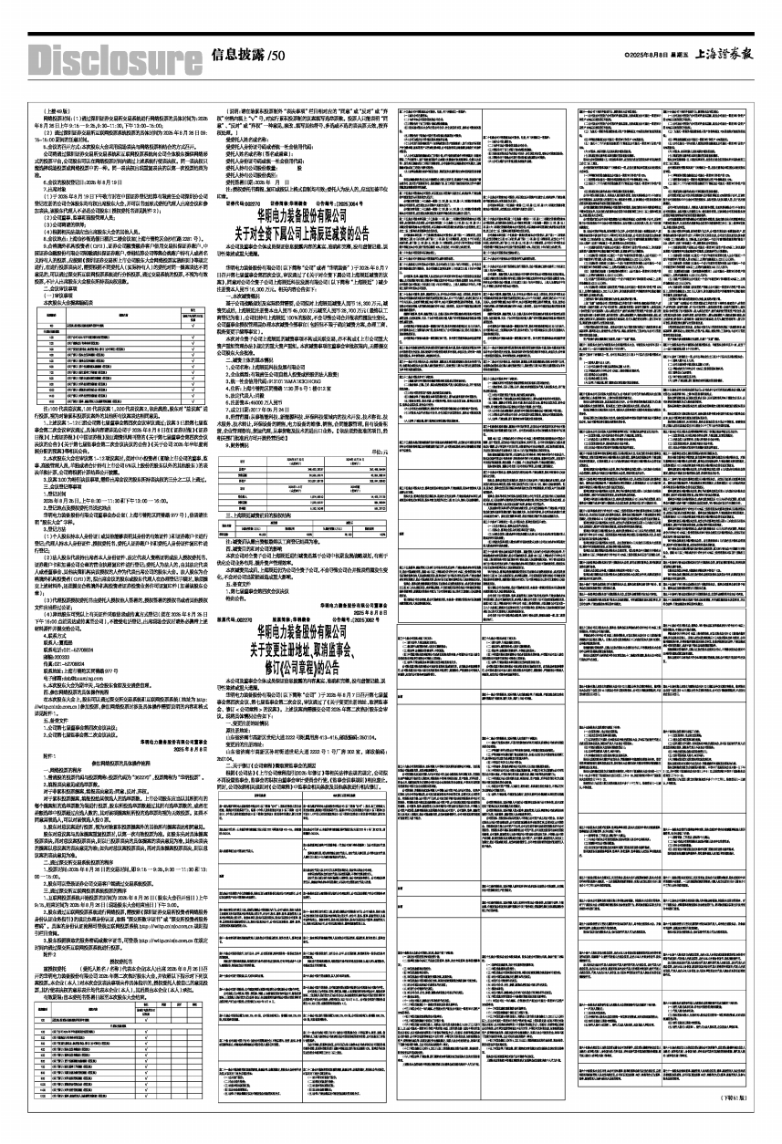 华明电力装备股份有限公司董事会办公室(上海市普陀区同普路977号),信函请注明“股东大会”字样。
