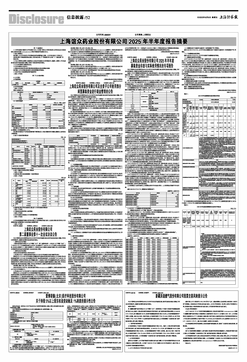 具体内容详见公司同日在上海证券交易所网站(www.sse.com.cn)披露的《上海谊众药业股份有限公司2025年半年度募集资金存放与使用的专项报告》(公告编号:2025-032)。