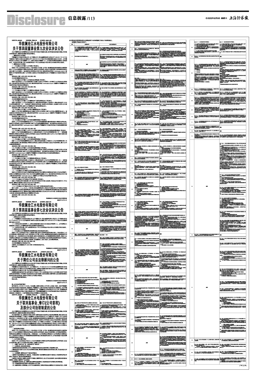为全面贯彻党中央、国务院关于建立完善中国特色国有企业现代公司治理决策部署,深化国有企业监事会改革及章程修订工作要求,华能澜沧江水电股份有限公司(以下简称公司)根据《中华人民共和国公司法》、中国证监会《关于新〈公司法〉配套制度规则实施相关过渡期安排》《上海证券交易所股票上市规则》及《上市公司章程指引》等相关法律法规、规范性文件的规定,结合公司实际情况,拟取消监事会,修订《华能澜沧江水电股份有限公司章程》(以下简称《公司章程》),同步修订部分公司治理制度。2025年8月8日公司召开第四届董事会第九次会议、第四届监事会第七次会议,分别审议通过了《关于修订〈公司章程〉的议案》《关于撤销监事会和监事并废止相关制度的议案》等议案,有关情况公告如下: