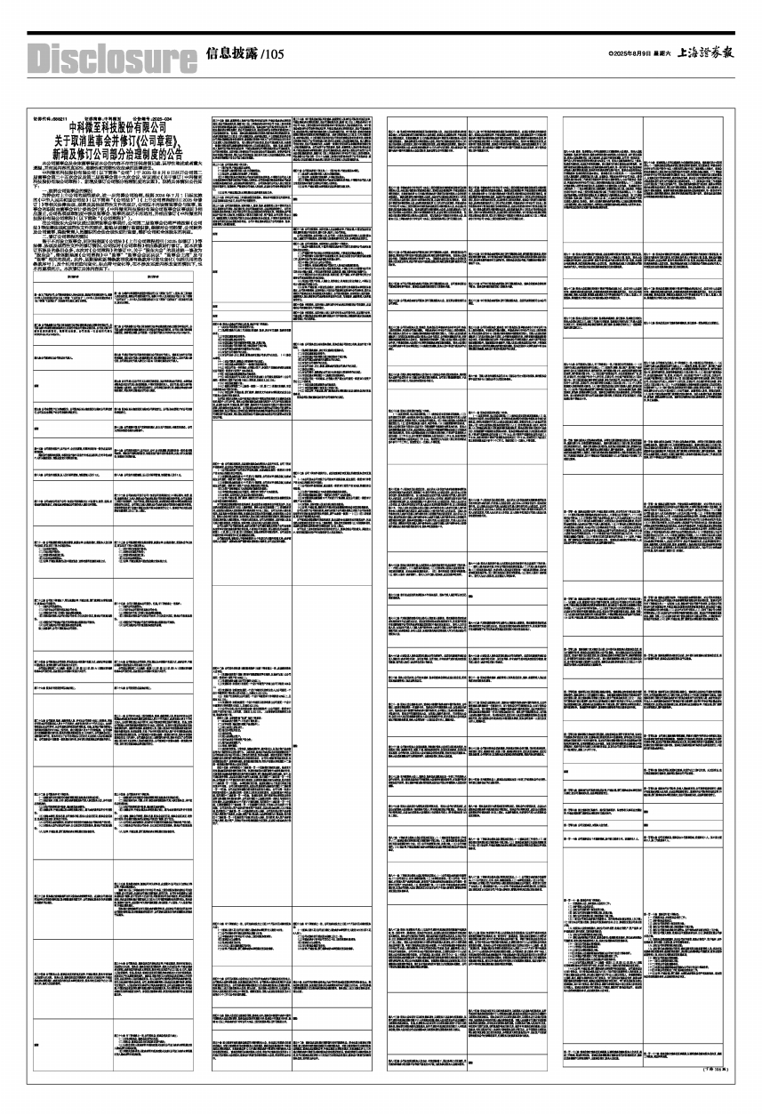 中科微至科技股份有限公司(以下简称“公司”)于2025年8月8日召开公司第二届董事会第二十五次会议及第二届监事会第十九次会议,审议通过《关于修订〈中科微至科技股份有限公司章程〉、新增及修订公司部分治理制度的议案》。现将具体情况公告如下: