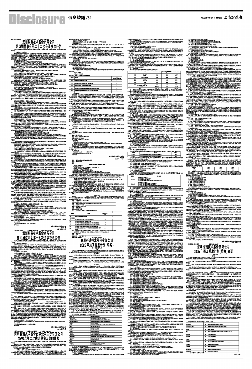 深圳科瑞技术股份有限公司(以下简称“公司”)第四届监事会第十七次会议于2025年8月8日以现场会议方式召开。本次监事会会议通知及会议材料已于2025年8月6日以电子邮件方式向公司全体监事发出。会议由监事会主席谭慧姬女士主持。本次会议应出席监事3人,实际出席监事3人。公司董事会秘书列席了会议。本次会议的召集、召开符合有关法律、行政法规、部门规章、规范性文件和公司章程的规定。