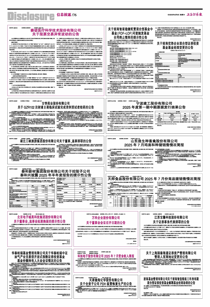 天邦食品股份有限公司2025年7月份商品猪销售情况简报