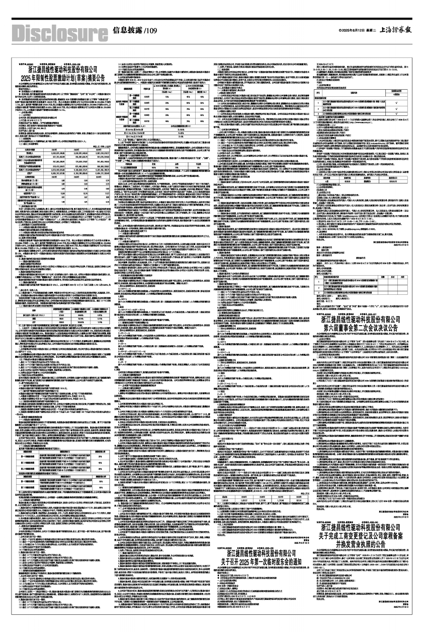 证券代码:603583 证券简称:捷昌驱动 公告编号:2025-038