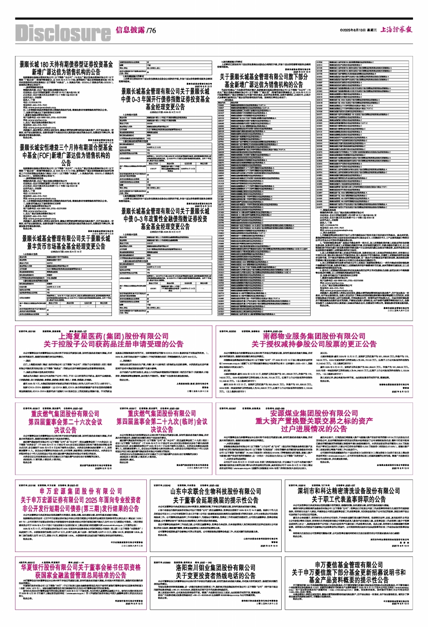 根据景顺长城基金管理有限公司(以下简称“本公司”)与北京广源达信基金销售有限公司(以下简称“广源达信”)签署的销售协议,自2025年8月13日起,新增委托广源达信销售景顺长城180天持有期债券型证券投资基金(以下简称“本基金”, A 类基金代码: 023224;C 类基金代码:023225)。现将相关事项公告如下: