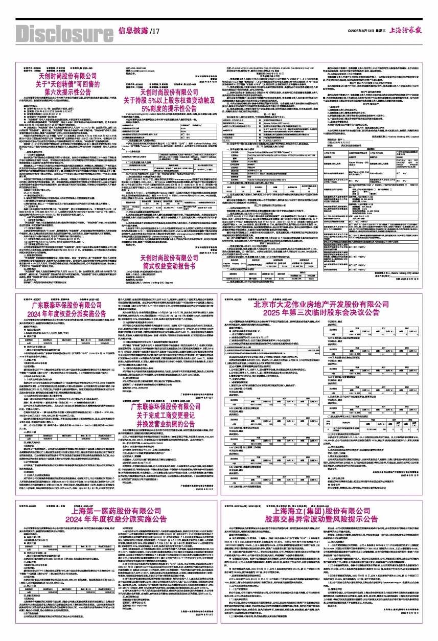 (四)换手率较高的风险。2025年8月12日,公司A股股票换手率为21.51%,前10个交易日日均换手率为16.93%,换手率倍数为1.27倍,高于日常换手率。