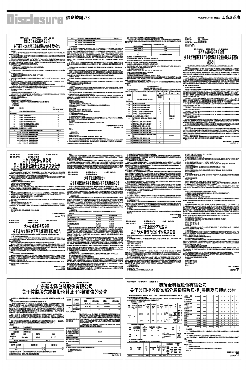 2025年7月12日,公司披露《焦作万方铝业股份有限公司关于发行股份购买资产并募集配套资金暨关联交易事项的进展公告》(公告编号:2025-046)。