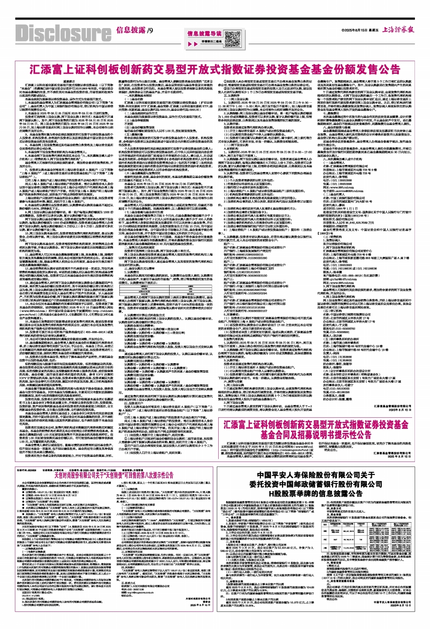 汇添富上证科创板创新药交易型开放式指数证券投资基金基金合同全文和招募说明书全文于2025年8月15日在本公司网站(www.99fund.com)和中国证监会基金电子披露网站(http://eid.csrc.gov.cn/fund)披露,供投资者查阅。如有疑问可拨打本公司客服电话(400-888-9918)咨询。