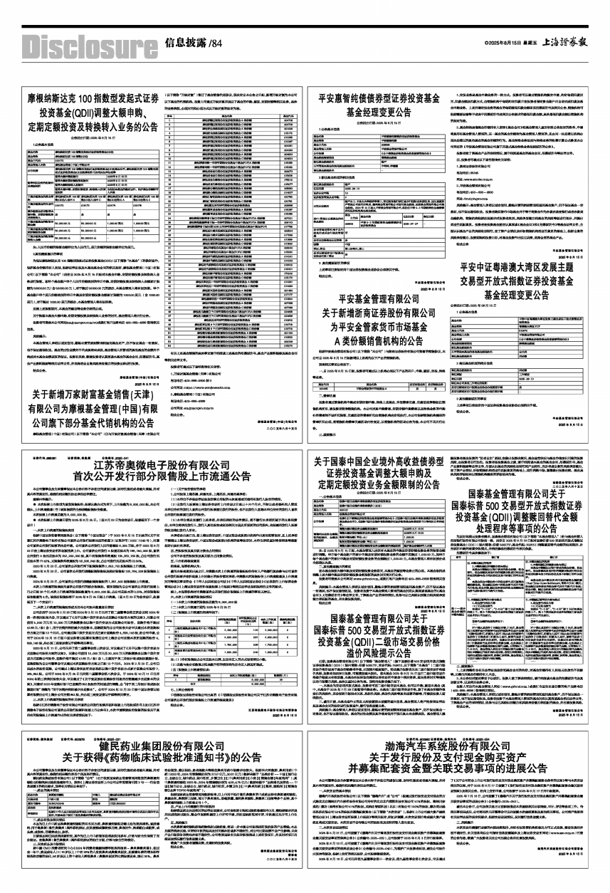 为保证摩根纳斯达克100指数型发起式证券投资基金(QDII)(以下简称“本基金”)的稳定运作,保护基金份额持有人利益,根据法律法规及本基金基金合同的相关规定,摩根基金管理(中国)有限公司(以下简称“本公司”)决定自2025年8月15日起对本基金申购、定期定额投资及转换转入业务进行限制。即单个基金账户单个人民币份额类别的单日申购、定期定额投资及转换转入金额累计限额为50000.00元(含50000.00元),对于超过50000.00元的部分,本基金管理人将有权拒绝。单个基金账户单个美元份额类别的单日申购及定期定额投资金额累计限额为1000.00美元(含1000.00美元),对于超过1000.00美元的部分,本基金管理人将有权拒绝。