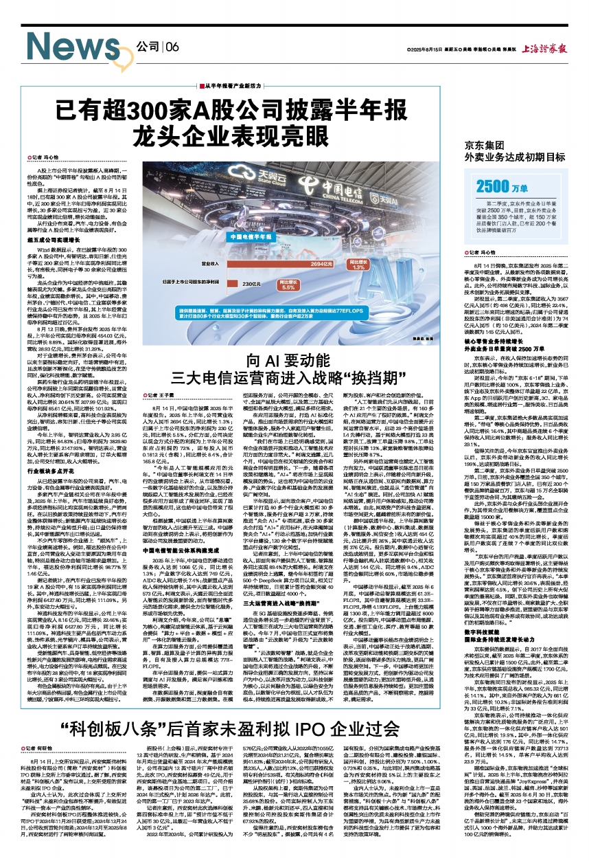 据上海证券报记者统计,截至8月14日18时,已有超300家A股公司披露半年报。其中,近200家公司上半年归母净利润实现同比增长,30多家公司实现扭亏为盈,近30家公司实现业绩同比倍增,增长动能强劲。