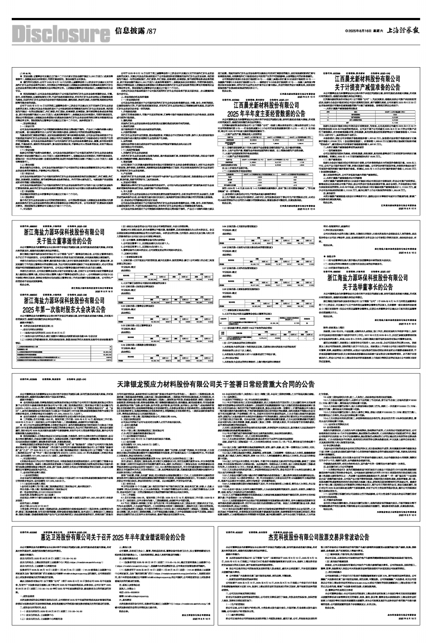 江西晨光新材料股份有限公司(以下简称“公司”)根据上海证券交易所《上海证券交易所上市公司自律监管指引第3号一一行业信息披露》《上市公司行业信息披露指引第十三号一一化工》有关规定,将公司2025年半年度主要经营数据披露如下: