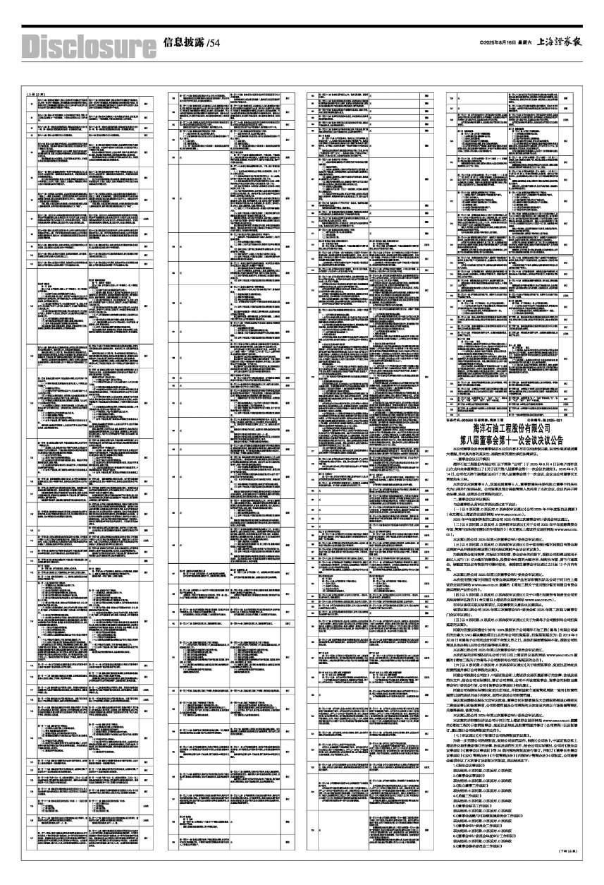 海洋石油工程股份有限公司(以下简称“公司”)于2025年8月4日以电子邮件送出方式向全体董事发出了《关于召开第八届董事会第十一次会议的通知》。2025年8月14日,公司在天津市滨海新区召开了第八届董事会第十一次会议,会议由公司董事长王章领先生主持。
