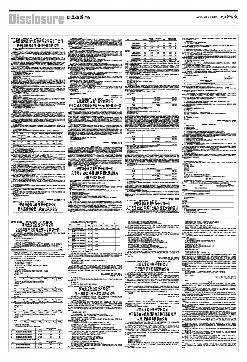 2、上述议案的详细内容请见公司2025年8月16日刊登于《中国证券报》、《证券时报》、《上海证券报》、《证券日报》及巨潮资讯网(www.cninfo.com.cn)的相关公告。