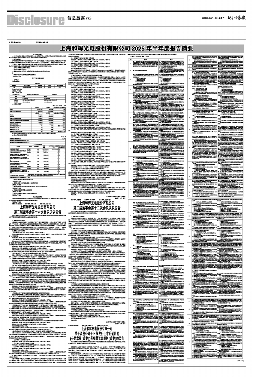 具体内容详见公司同日在上海证券交易所网站(www.sse.com.cn)披露的《上海和辉光电股份有限公司2025年半年度报告》《上海和辉光电股份有限公司2025年半年度报告摘要》。