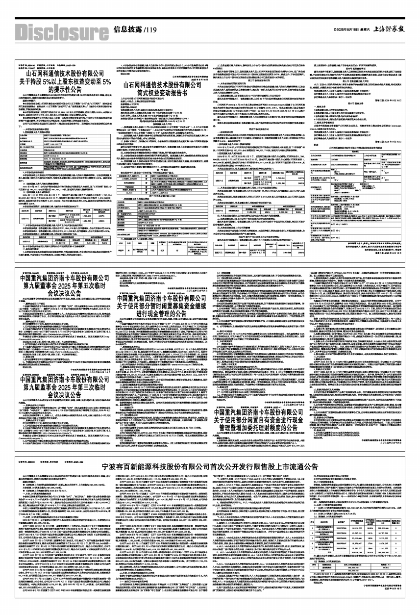 《中国重汽集团济南卡车股份有限公司关于使用部分闲置自有资金进行现金管理暨增加委托理财额度的公告》(公告编号:2025-41)刊登于2025年8月16日的《中国证券报》《证券时报》《证券日报》《上海证券报》和巨潮资讯网(http://www.cninfo.com.cn/)。