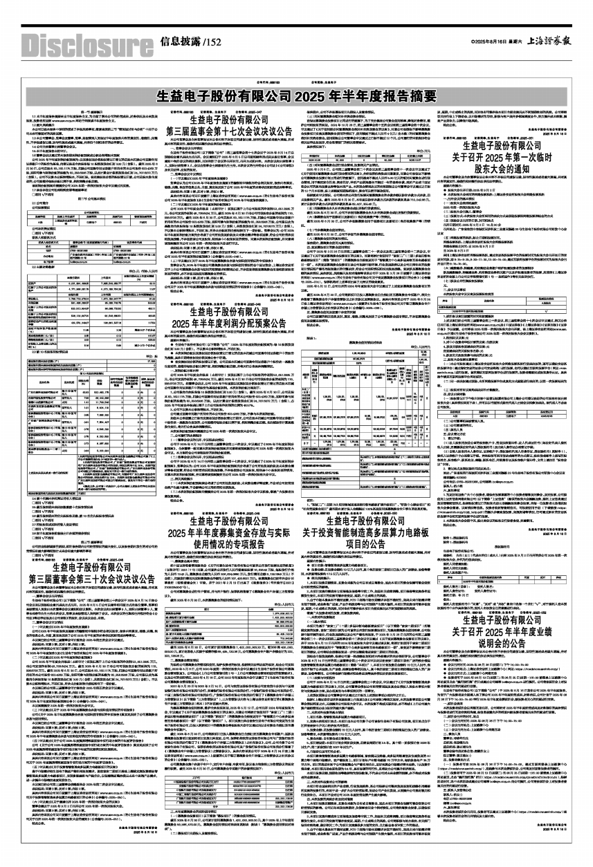 具体内容详见公司同日披露于上海证券交易所网站(www.sse.com.cn)的《生益电子股份有限公司2025年半年度报告》及《生益电子股份有限公司2025年半年度报告摘要》。