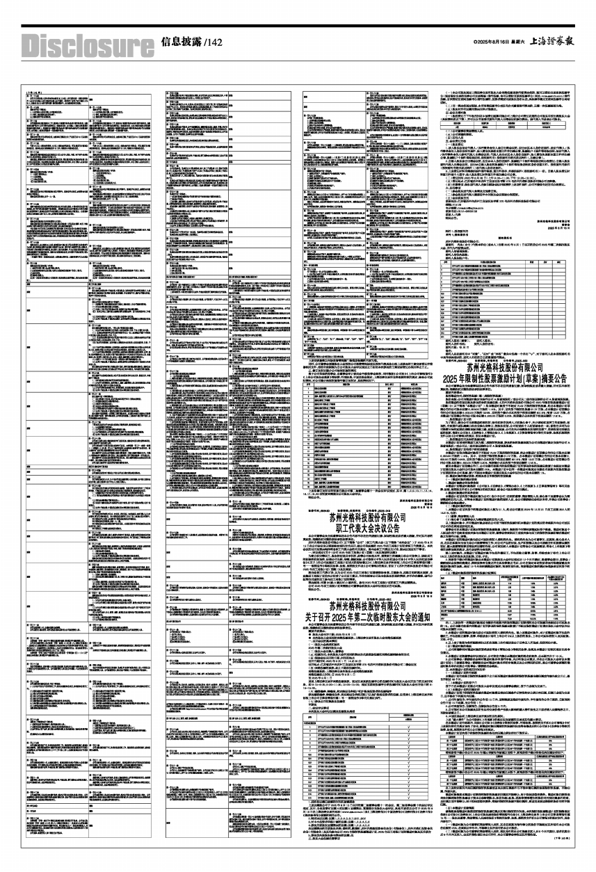 苏州光格科技股份有限公司(以下简称“公司”)职工代表大会(以下简称“本次会议”)于2025年8月15日在公司会议室以现场结合通讯方式召开,就公司拟实施的2025年员工持股计划征求职工代表意见。本次会议的召开及表决程序符合职工代表大会的有关规定。经与会职工代表民主讨论,经决议通过如下事项: