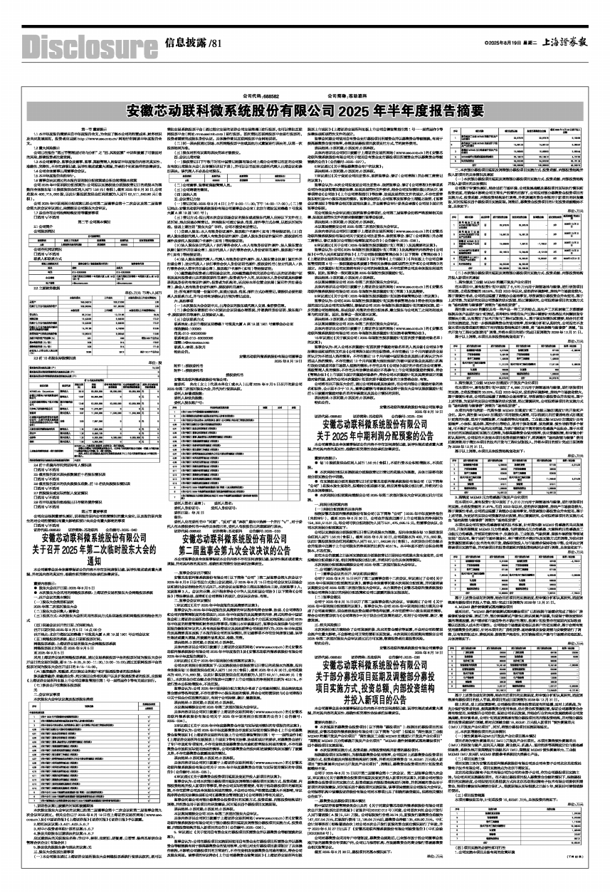 具体内容详见公司同日披露于上海证券交易所网站(www.sse.com.cn)的《安徽芯动联科微系统股份有限公司2025年半年度报告》及《安徽芯动联科微系统股份有限公司2025年半年度报告摘要》。