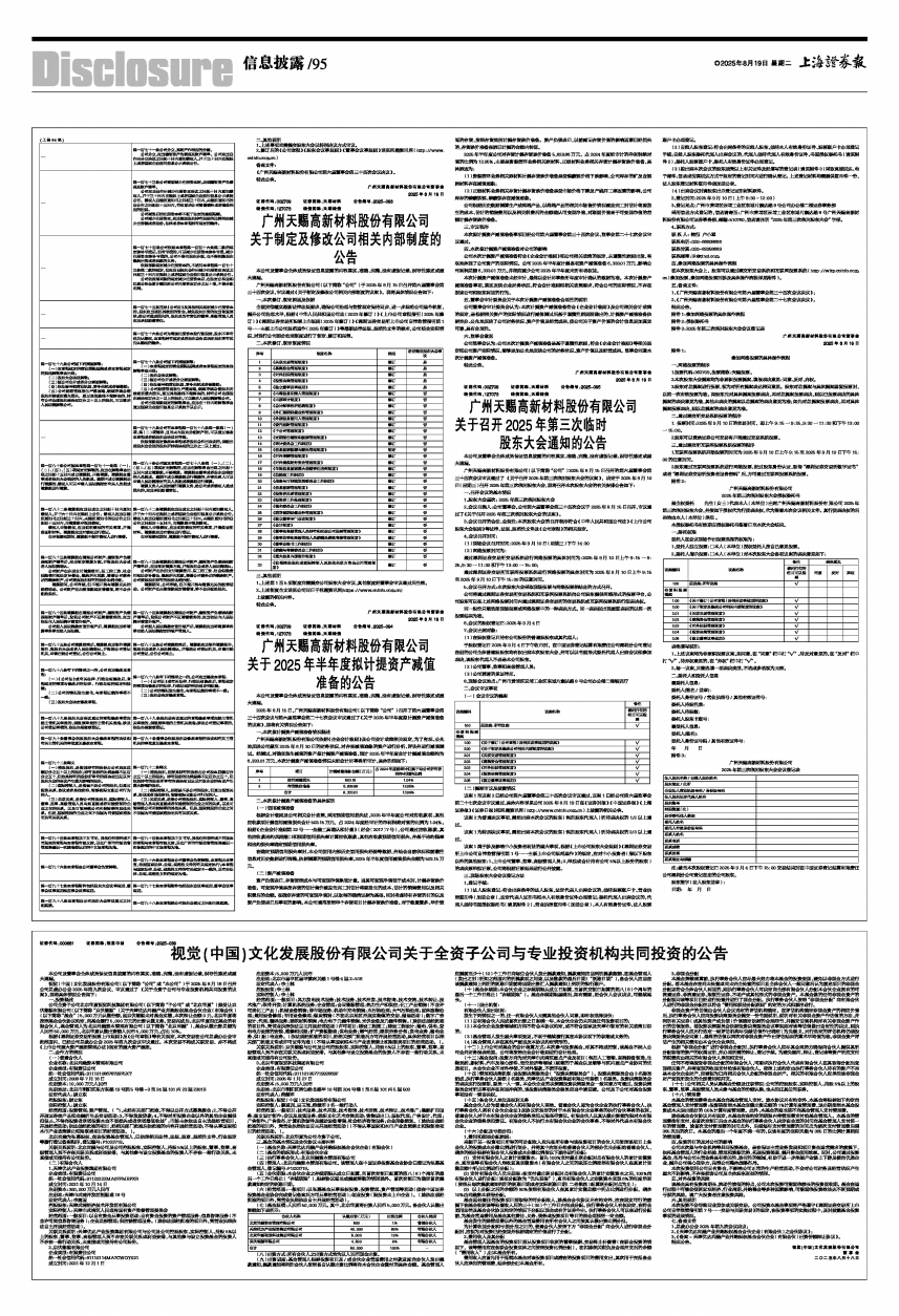 广州天赐高新材料股份有限公司(以下简称“公司”)于2025年8月15日召开第六届董事会第三十四次会议,审议通过《关于制定及修改公司相关内部制度的议案》。现将具体情况公告如下: