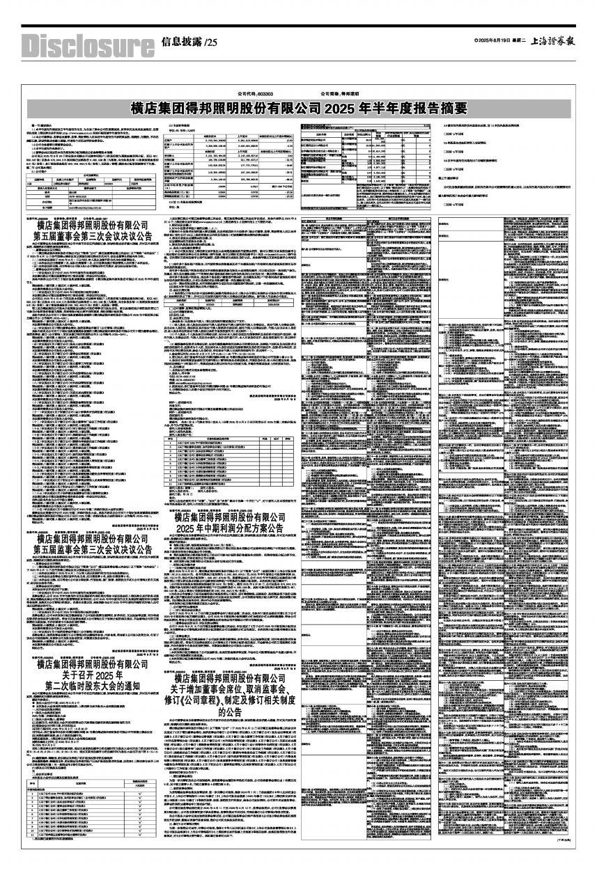 具体内容详见公司同日于指定信息披露媒体披露的《横店集团得邦照明股份有限公司2025年中期利润分配方案公告》(公告编号:2025-033)。