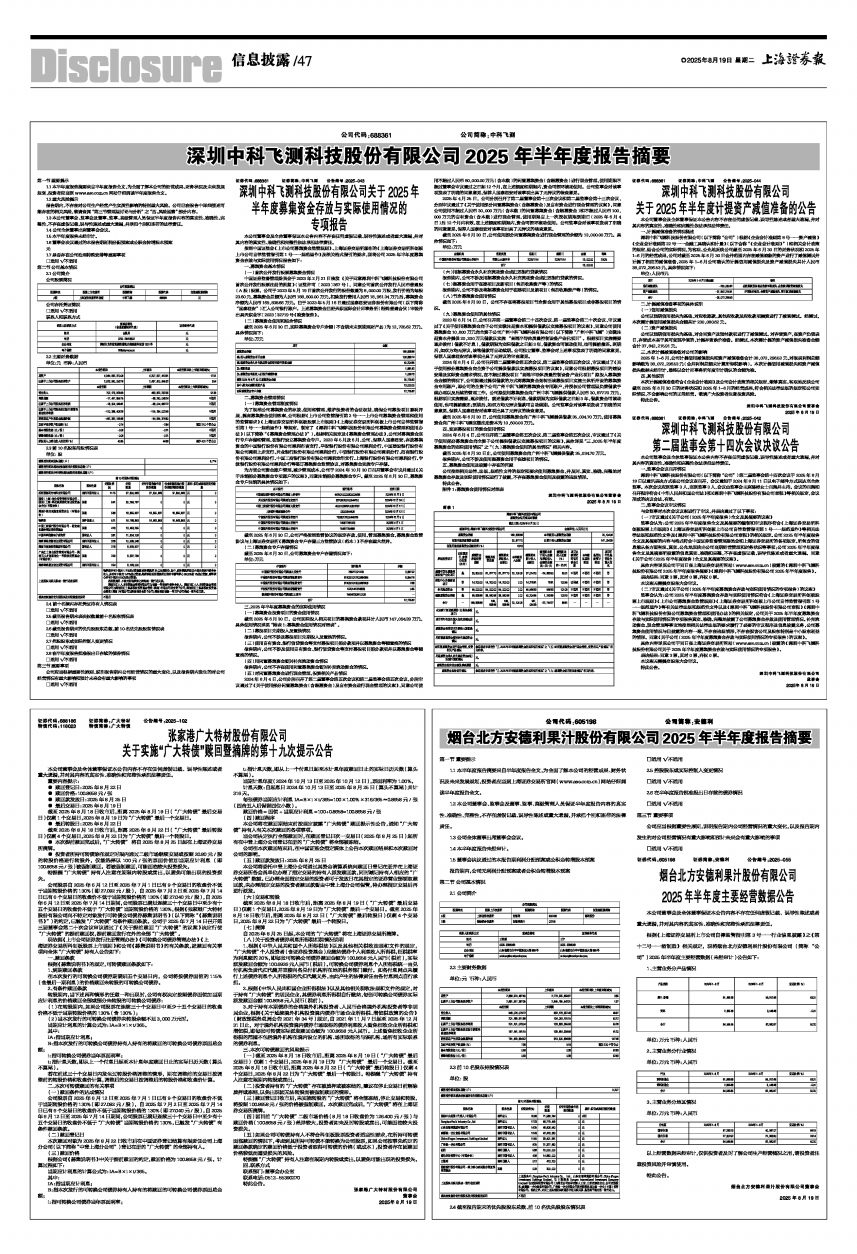 具体内容详见公司于同日在上海证券交易所网站(www.sse.com.cn)披露的《深圳中科飞测科技股份有限公司2025年半年度报告摘要》《深圳中科飞测科技股份有限公司2025年半年度报告》。