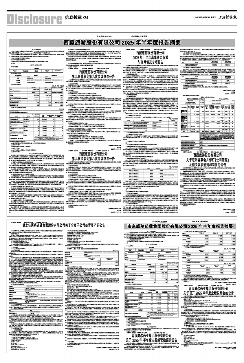 根据中国证券监督管理委员会发布的《上市公司募集资金监管规则》和上海证券交易所发布的《上海证券交易所上市公司自律监管指引第1号一一规范运作》等有关规定,西藏旅游股份有限公司(以下简称“公司”或“本公司”)将2025年上半年募集资金存放与使用情况专项报告如下: